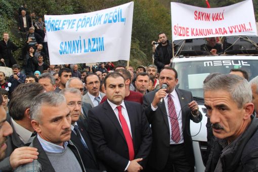 Görele’nin Çavuşlu Beldesi Eski Taş Ocağına alanına yapılması planlanan Katı Atık Bertaraf Tesisini protesto etmek için ‘Çöp Depolama Tesisine Hayır’ mitingi düzenlendi. Çavuşlu Belde Belediye önünde toplanan Bin 500 kişilik gurup çöp depolama tesisini protesto ederek, ellerindeki ‘Vali Verdiğin Sözü Tut, Görele’ye Çöplük Değil Sanayi Lazım, Çöpe Hayır, Oy Verdik Çöp Verdiler, Vali Kanunsuz İş Yapma’ yazılı pankartlarla çöp alanına doğru yürüdüler.