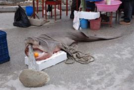 Görele'de Avlanan Köpek Balığı Satışa Sunuldu  29/04/2013 GİRESUN'un Görele ilçesinde kıyı balıkçılarının avladığı 1 metre uzunluğundaki köpek balığı kilosu 35 liradan satışa sunuldu.