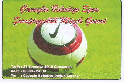 ÇAVUŞLU BELEDİYESPOR'UN ŞAMPİYONLUK MÜZİK GECESİNDE BULUŞALIM![]() 13/07/2010 2009 – 2010 Giresun 2 ci Amatör Küme B gurubunu şampiyon olarak bitiren gurur kaynağı takımımız Çavuşlu Belediye sporumuzun 21 Temmuz 2010 Çarşamba gecesi Saat 20:00 – 24:00 arasında Çavuşlu Belediye Parkında şampiyonluk kutlaması düzenlenecektir. Tüm saygıdeğer Çavuşlu halkı ve spor severler davetlidir. Çavuşlu Belediye Spor Yönetim Kurulu….