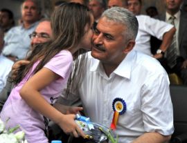 Yıldırım, konuşmasının bir bölümünde, ''Sayın Bakanım, Telekom'un yaptırmış olduğu okulda okumak istiyoruz'' yazılı pankartı tutan öğrencileri yanına çağırarak, ''Size sözüm olsun, size bir okul yaptıracağım'' dedi.