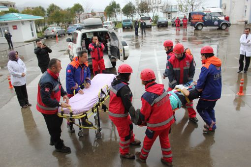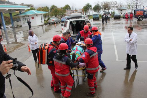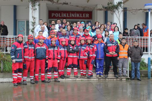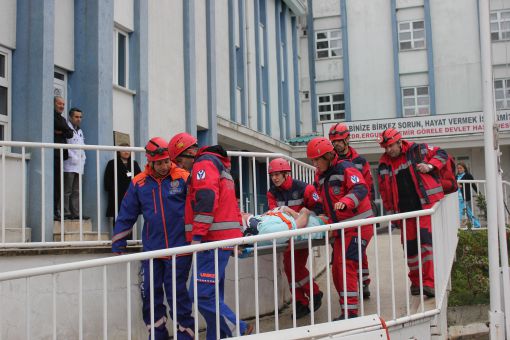 Görele Devlet Hastanesi'nde Yangın Tatbikatı Yapıldı. 12/03/2014Bekir Öztürk Giresun'un Görele ilçesi Devlet Hastanesi'nde, Giresun İl Sağlık Müdürlüğü Ulusal Medikal Kurtarma Ekibi (UMKE), İtfaiye ekipleri ve hastane personeli tarafından yangın tatbikatı gerçekleştirildi. Görele Devlet Hastanesi'nde herhangi bir afet durumunda yangın ve tahliye tatbikatı yapıldı. Yapılan tatbikatta Sağlık personelinin bilinçlendirilmesi amacıyla, personel ve hastalar tahliye edildi. Oluşturulan güvenli bölgede personel ve hastalar toplanarak önlem alınması gerçekleştirildi. Hastane bahçesinde yapılan tatbikatta, verilen yangın alarmının ardından UMKE ve itfaiye ekipleri, hastane personeline uygulamalı olarak yangına müdahalede izlenecek yöntem ve yolları anlattı. Tatbikatta hastanenin ikinci katında mahsur kalan, UMKE ve itfaiye ekipleri tarafından kurtarılan kişiye 112 Acil Servis görevlileri müdahale etti. Tatbikatla ilgili açıklama yapan Hastane yetkilileri, tatbikatın başarılı geçtiğini ifade etti. |