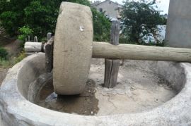 “Avluda dibek taşı. Nasıl eskiden çeşme başlarında kadınlar bir araya gelir hem sularını doldurur hem de sohbet ederlerdi..onun gibi… Bu çeşmelerde buluşmalarda artık yok.. çünkü her köyde her evde artık su var.. çeşmeler sadece oradan geçenler içsin, hayır dua almak için yapılıyor… Birde küçük el dibekleri vardı, bu iki yuvarlak, ortası delik taştan oluşmakta idi, Bu taşın altına temiz bir örtü serilerek, delikten buğday aktarılarak ve kol çevrilerek alttan kepekli bulgur olarak çıkıyordu. Sonra kepeği bulgurdan savrularak ayrılıyordu. Dibek Taşı olayında Köklüce ve Çalgan Köyü bu işi daha farklı bir boyuta getirmişler, insan gücü yerine hayvan gücünü kullanarak buğdaydan bulgur ve gendüme elde ediyorlarmış. Bu dibek taşı örneğin Karabörk köyünde içine su doldurularak, içine taze patatesler atılıyor ve bu patatesler suyun içinde dibek taşının kenarına sürtülerek kabukları soyuluyormuş…