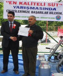 Çanakçı'da Çifçiler Yarıştı![]() 16/10/2010 Çanakçı’da Tarım İl Müdürlüğü tarafından hazırlanan İl Özel İdaresi finansmanı ile uygulamaya konulan ''Sütlerde Sağım Hijyeni ve Kalitenin İyileştirmesi Projesi'' kapsamında süt yarışması düzenlendi. Proje kapsamında yürütülen teknik çalışmaları ve birebir yapılan uygulamalı eğitimlerin önemini anlatan İl Tarım Müdürü Muhammet Hakyemez, katkısı geçen herkese teşekkür ederek, Bakanlık tarafından üreticilere verilen teşvik/destekler hakkında da bilgi verdi. Toplam 27 çiftçiden 11’nin katıldığı “en kaliteli süt” yarışmasında Hüseyin Arslan birinci, Sabire Kodalak ikinci, Gülümser Bebek üçüncü geldi. Yarışmada birinci gelen çiftçiye Süt Sağma Makinesi, Süt Güğümü, Süt Kovası, Dijital Termometre hediye edilirken, ikinci ve üçüncüye Yayık makinesi, Süt Kovası, Süt güğümü hediye edildi. Projeye katkı sağladığı için 8 çiftçide ödüllendirildi. Eğitim çalışmasının kendileri için çok faydalı geçtiğini ifade eden çifti Hüseyin Arslan ise benzeri projelerin devam etmesini istedi.