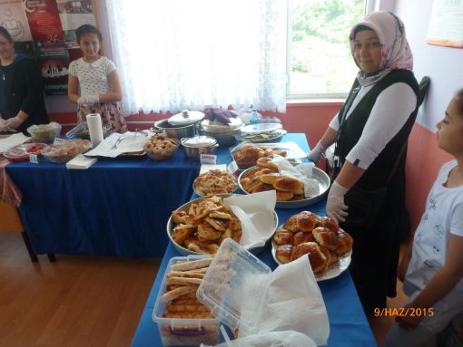 Öğrenci velilerinin evlerinde hazırlamış oldukları birbirinden leziz yöresel ev yemekleri ve tatlıları yıl sonu sergisini festivale dönüştürdü. Okul bahçesinde kurulan stant da Peynirli ve Kıymalı Gözlemeler yapılarak Sergiye ve Kermese katılanlara Okula küçük bağış karşılığında dağıtıldı.